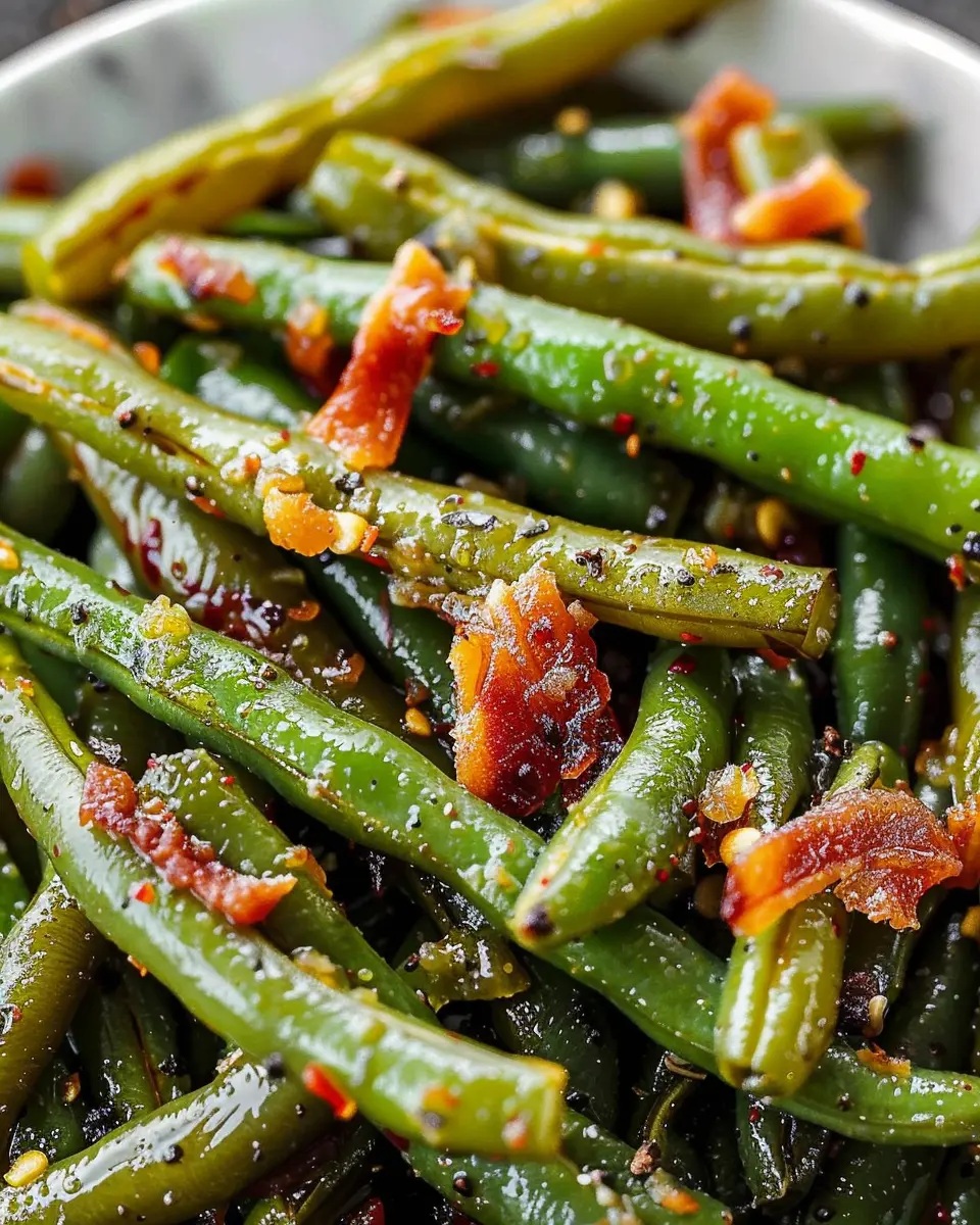 Getting started on this mouthwatering dish is quick and easy! You’ll need about 10 minutes to gather your ingredients, chop the Turkey Bacon, and prep the green beans. Pro tip: Have everything ready before you start cooking to make the process even smoother.