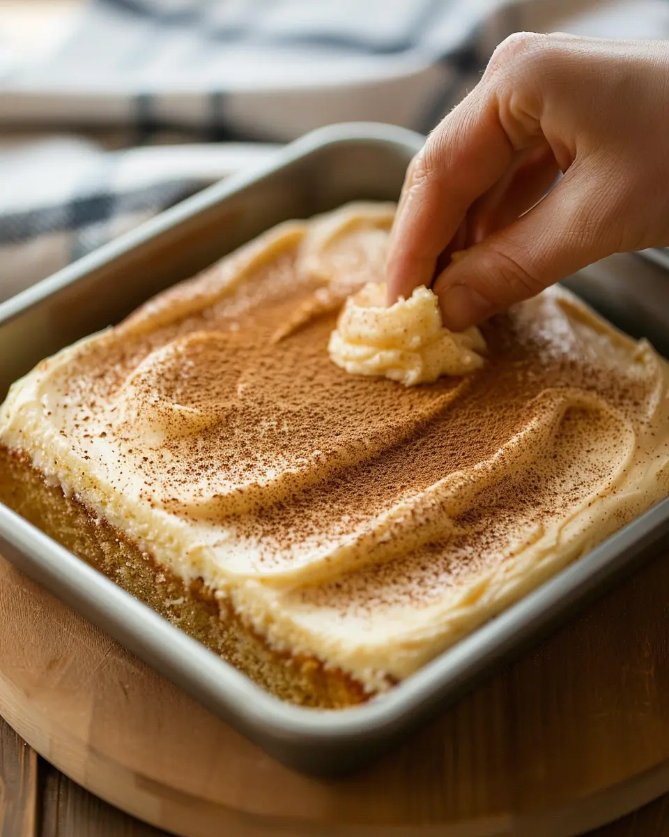 Pour your batter into the prepared baking sheet and spread it evenly. Bake in your preheated oven for 25-30 minutes, or until a toothpick inserted in the center comes out clean. Keep an eye on it! You don’t want to miss that moment when your kitchen fills with the irresistible scent of apple cinnamon sheet cake.