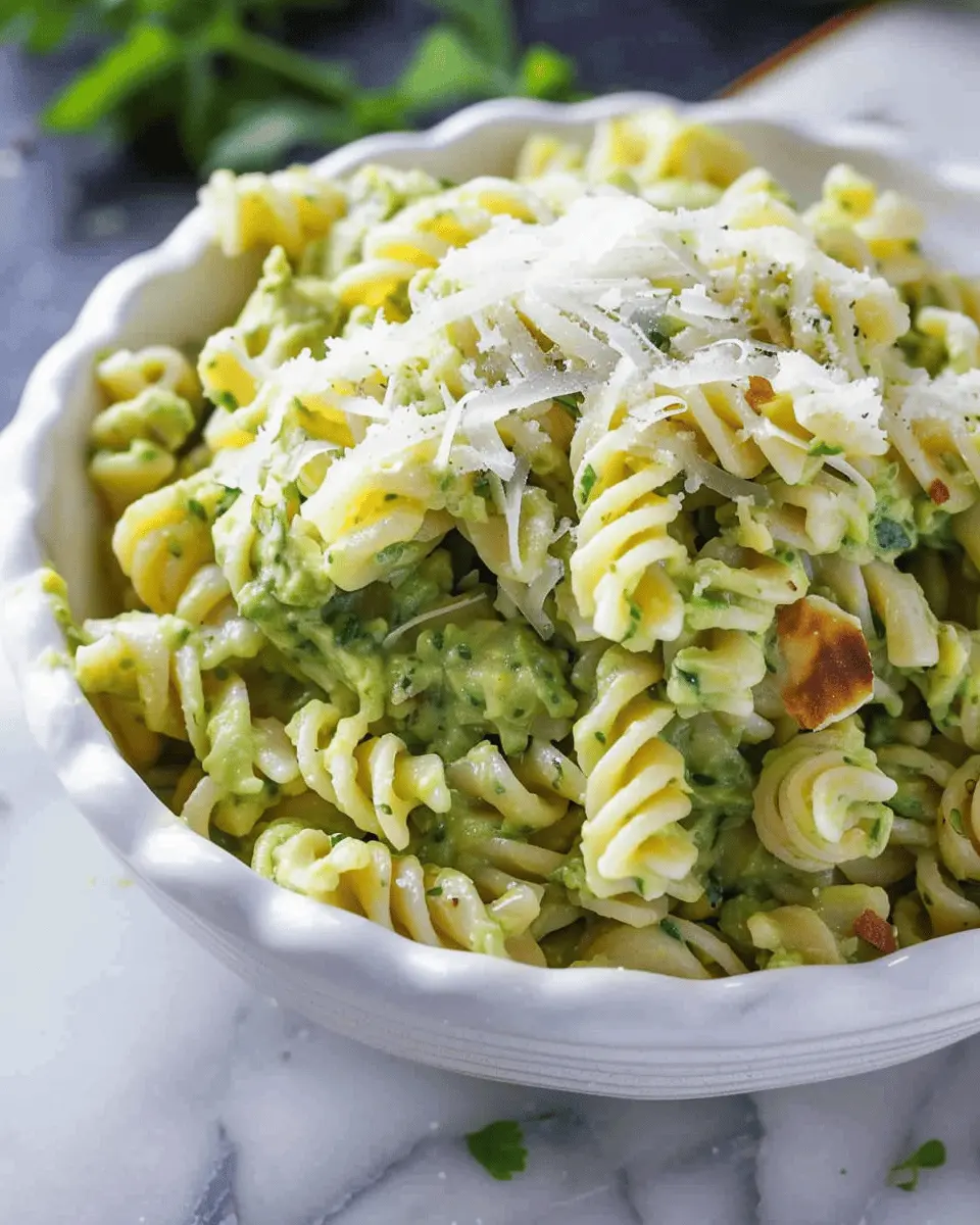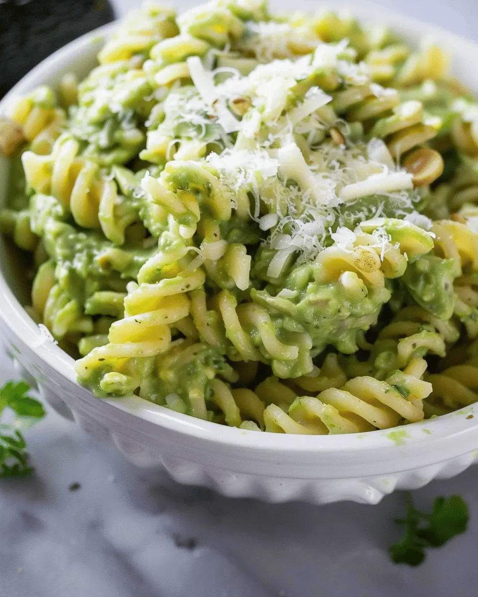 Mix them together: In a large mixing bowl, combine the drained pasta with the avocado sauce. Toss gently to ensure every strand is well-coated.