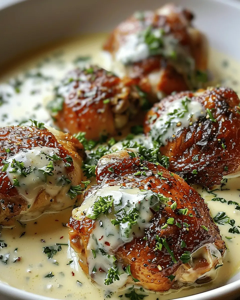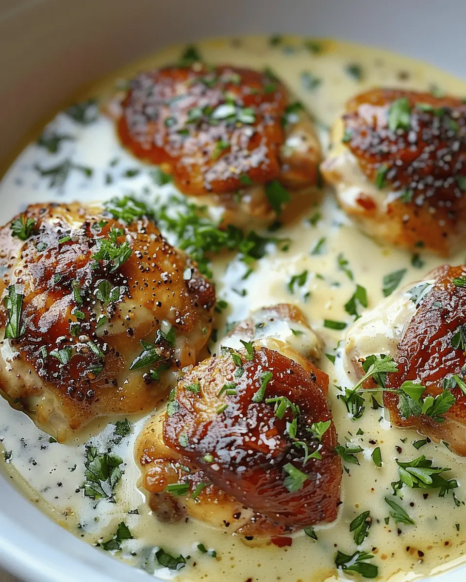Keywords: Bobby Flay Chicken Thighs, Creamy Garlic Sauce, Chicken Recipe
