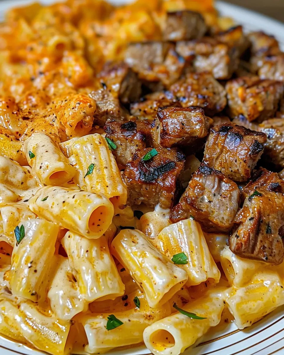 Cajun Steak Tips in Cheesy Rigatoni Parmesan Sauce is a delightful dish that beautifully combines the richness of cheese with the flavorful kick of Cajun seasoning. Perfect for cozy evenings.