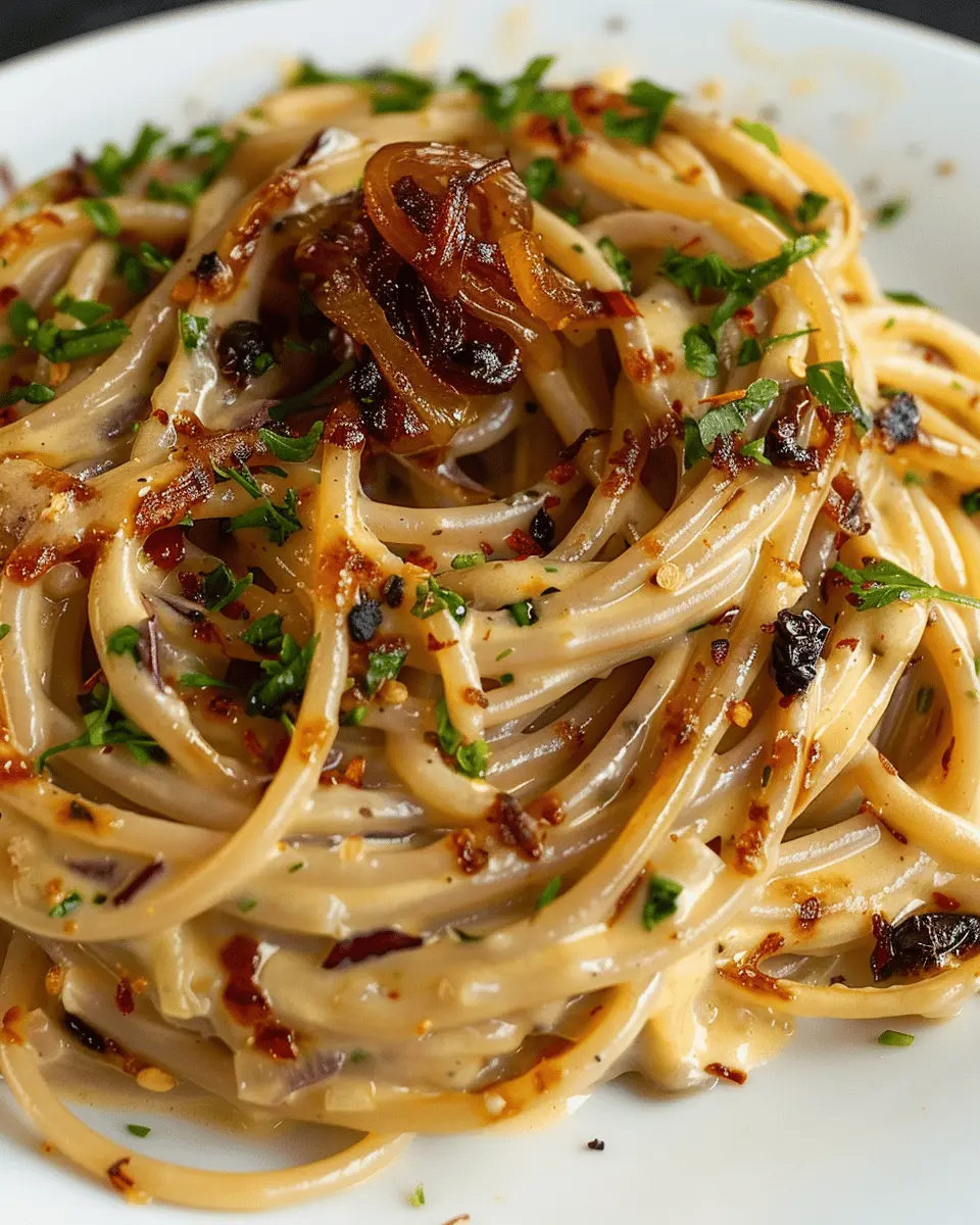 PrintCaramelized Onion Pasta: Indulgent Flavor with Chilli Oil