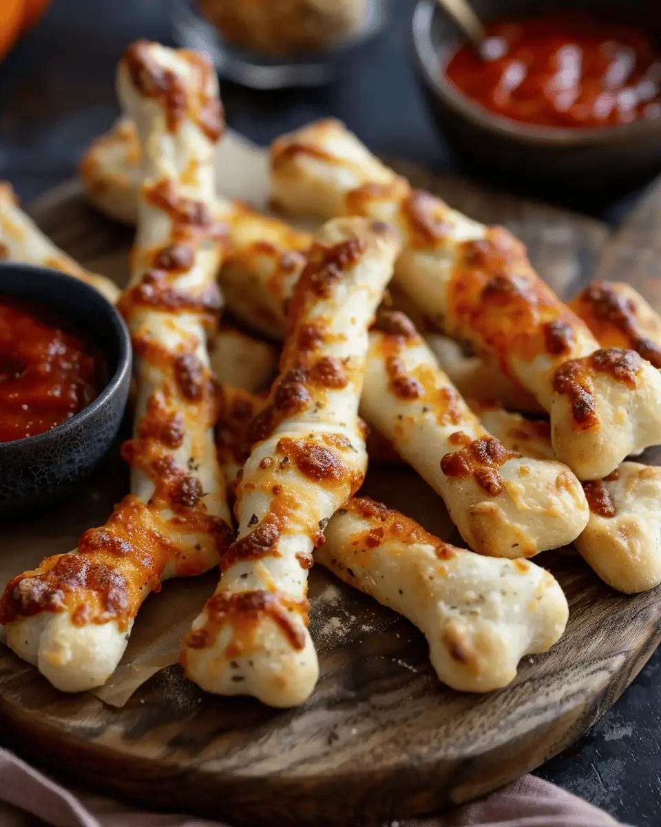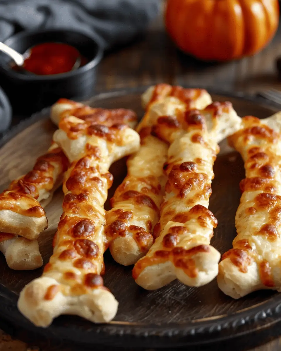 These Cheesy Halloween Breadstick Bones are a fun and spooky treat that will delight all your guests!