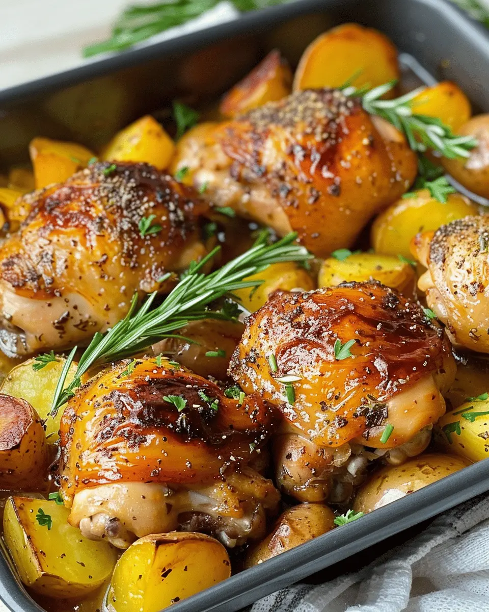 A delicious and simple one-pan recipe featuring tender chicken thighs and perfectly roasted potatoes.