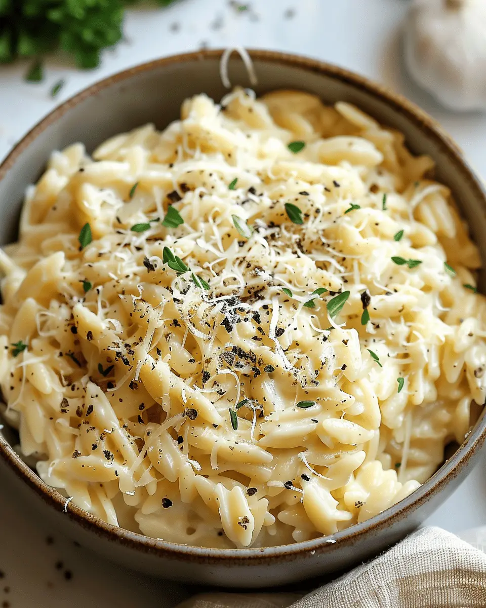 And there you have it—a wonderfully comforting dish that’s sure to impress! Whether it’s a weeknight dinner or a special occasion, this creamy garlic parmesan orzo is bound to be a crowd-pleaser.