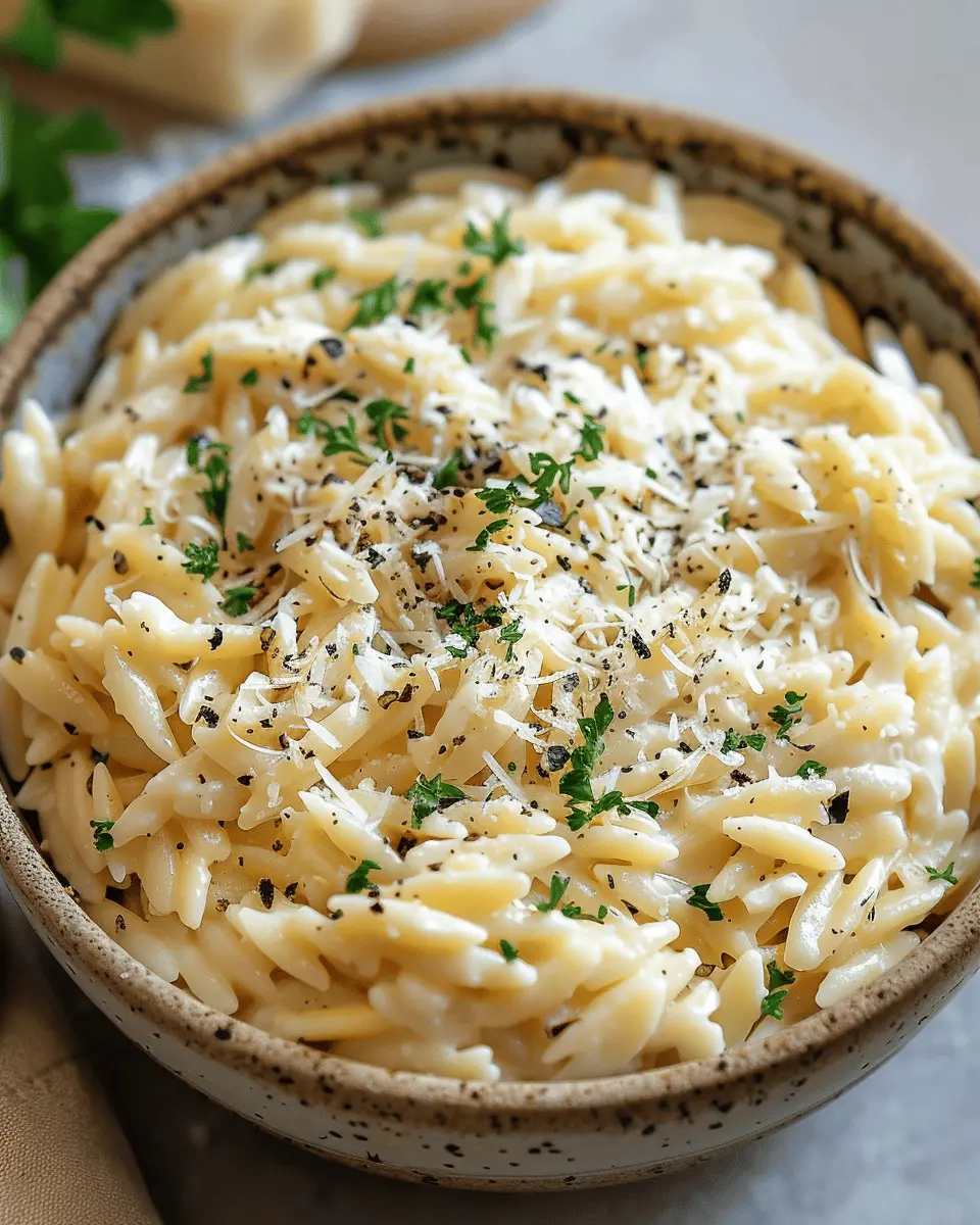 Cooking Tips and Notes for Creamy Garlic Parmesan Orzo