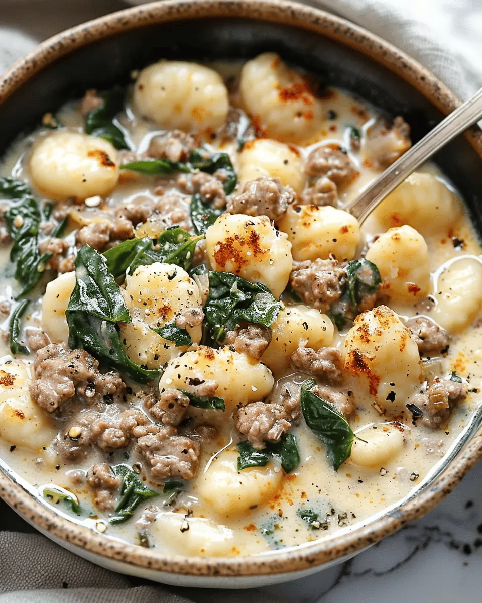Spinach not only adds a pop of color but also boosts the nutritional profile of your gnocchi zuppa toscana, making it feel like a complete meal.