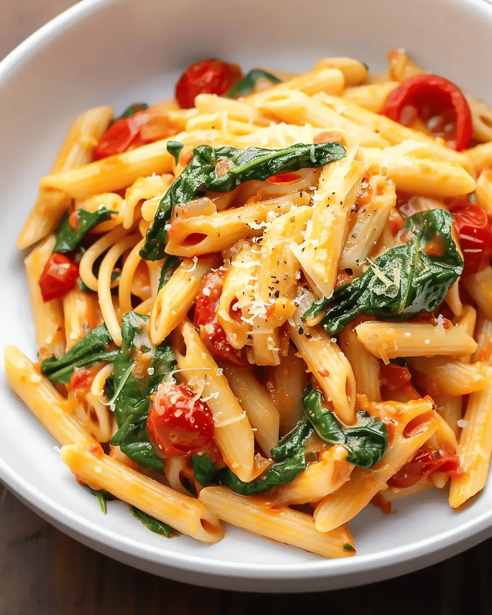 Keywords: One-Pot Spinach Tomato Pasta, easy pasta recipe, weeknight dinner