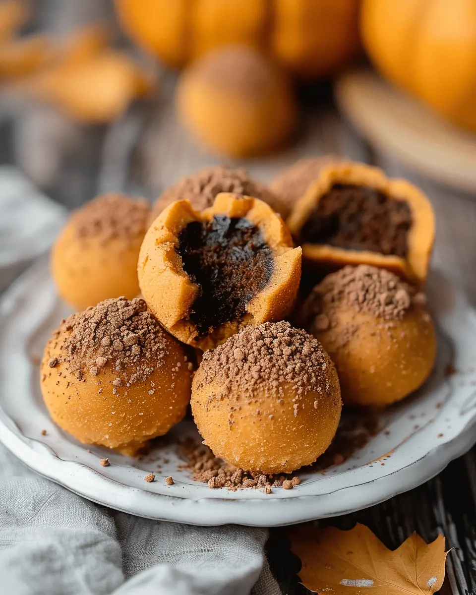 Elevate your Pumpkin Cheesecake Truffles with a rich chocolate coating infused with warm spices. The balance of smooth chocolate and spiced pumpkin filling creates a decadent treat.