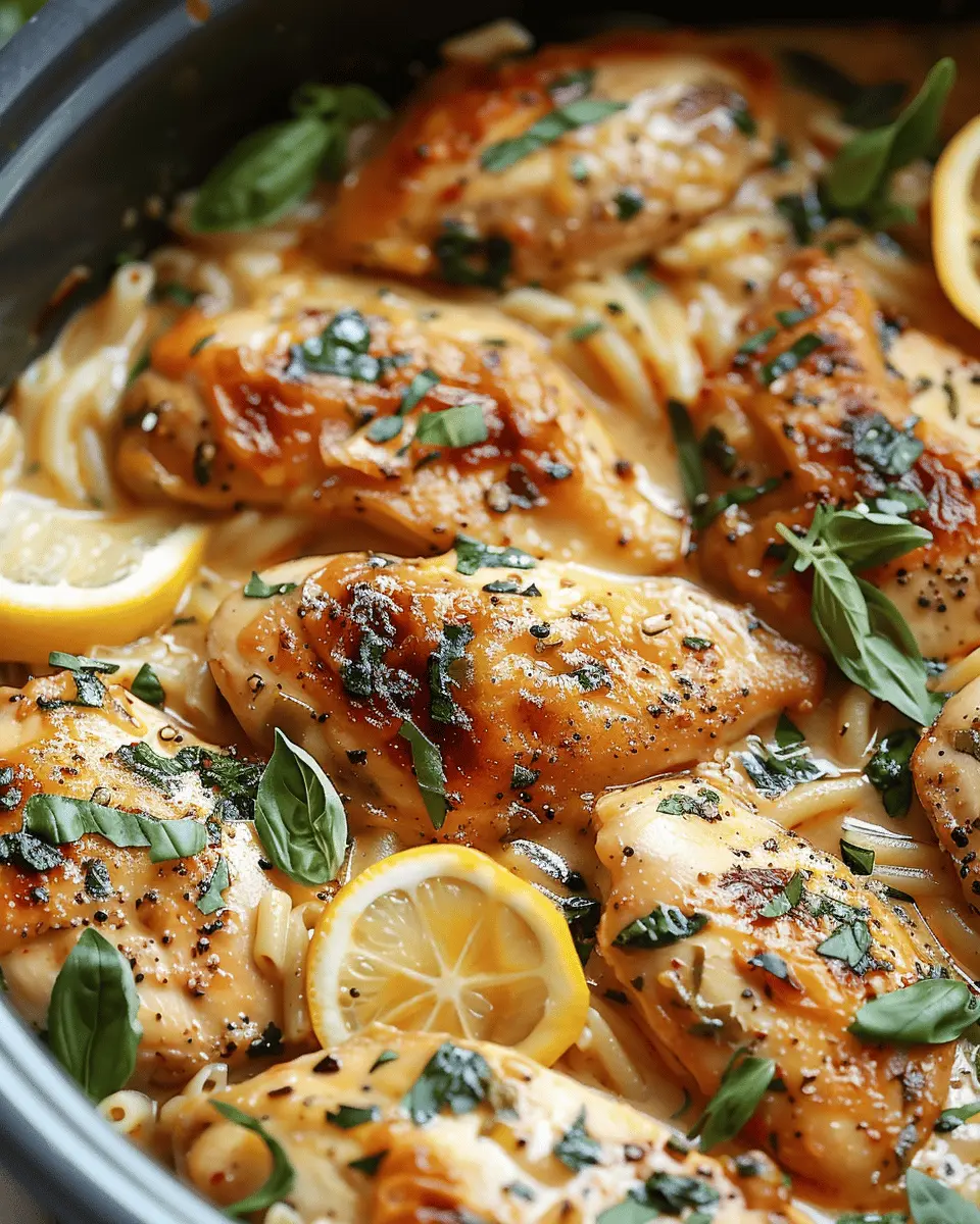 PrintSlow Cooker Lemon Garlic Chicken: Easy & Flavor-Packed Delight