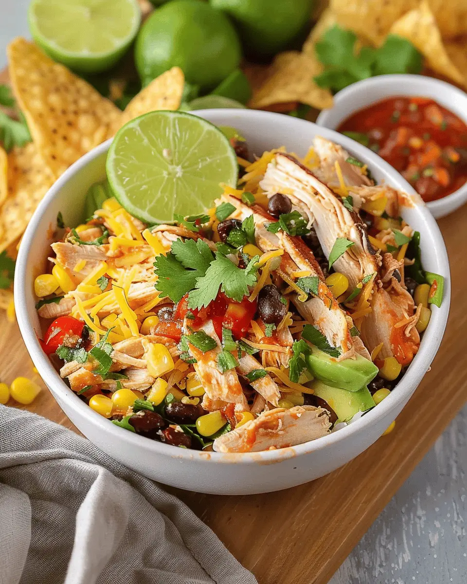 - Tortilla Chips: Serve alongside crispy tortilla chips for an extra crunch. They provide a delightful contrast to the tender chicken and fresh veggies.