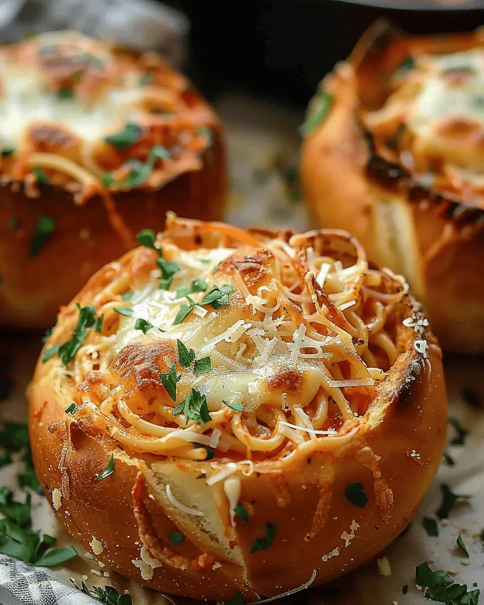 PrintSpaghetti Garlic Bread Bowls: Indulgent Comfort Food Delight