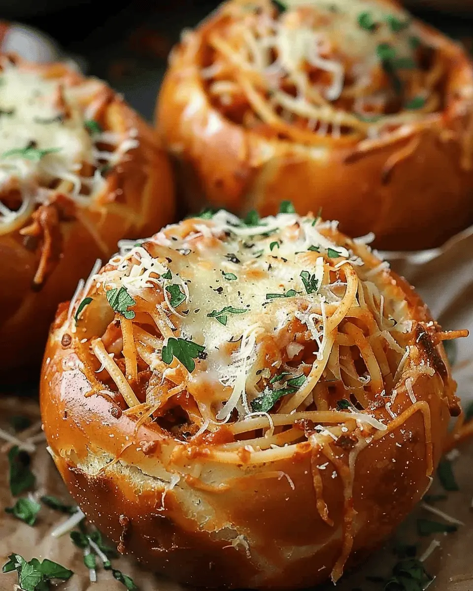 These bowls are not just a meal; they’re an experience! Imagine delicious spaghetti nestled inside a crispy, buttery garlic bread bowl. The crunch of the bread paired with the rich flavors of pasta creates a mouthwatering combination that’s sure to wow your taste buds—and they’re surprisingly easy to make.