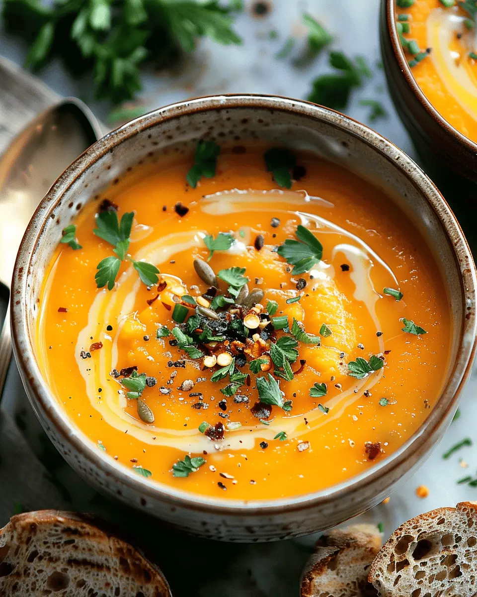 When enjoying your spicy butternut squash soup, consider pairing it with crusty breads or fresh salads for a delightful balance. A slice of homemade sourdough or a warm, toasted baguette can perfectly complement the soup’s creamy texture. For a healthier side, a simple arugula salad drizzled with lemon vinaigrette adds a peppery kick that contrasts beautifully with the sweetness of the soup. If you’re looking to boost the flavor profile further, a sprinkle of feta cheese or some toasted pumpkin seeds can add that extra layer of crunch and depth.