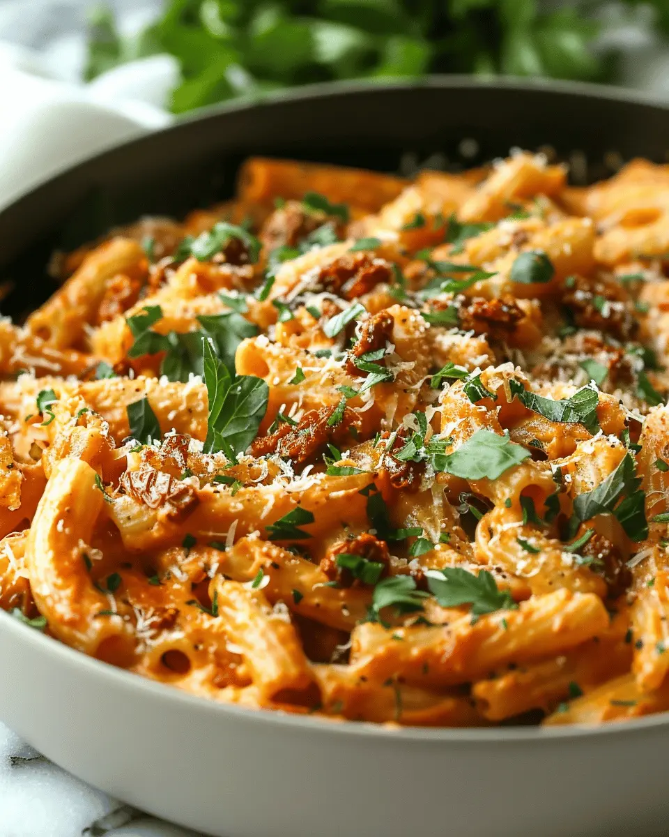 Imagine enjoying a creamy, savory pasta that’s elevating your weeknight dinners, while being a fantastic option for impressing guests. The rich flavors of garlic, fresh basil, and sun-dried tomatoes create a dish that feels gourmet without all the fuss.