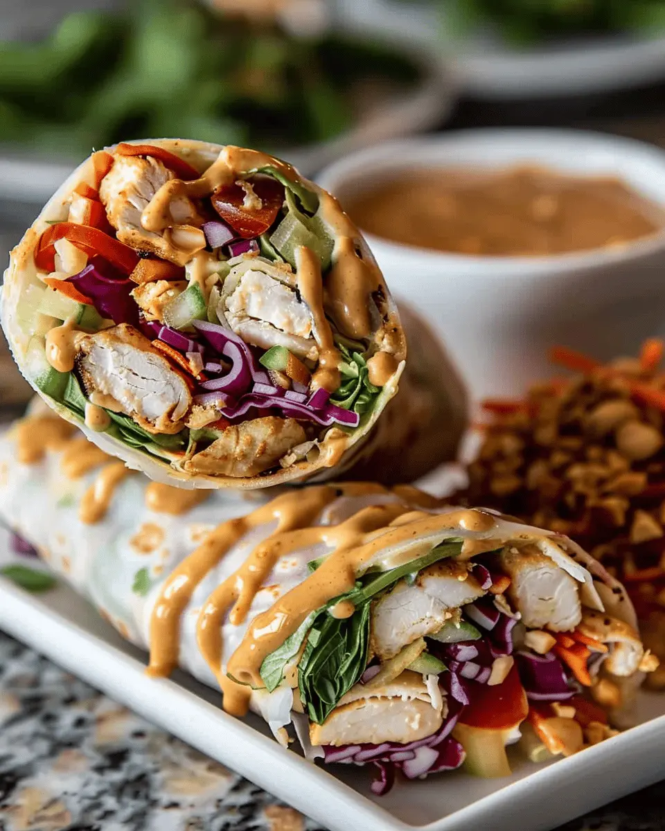 Discover how to make delicious and easy Thai Peanut Chicken Wraps at home with this simple recipe.