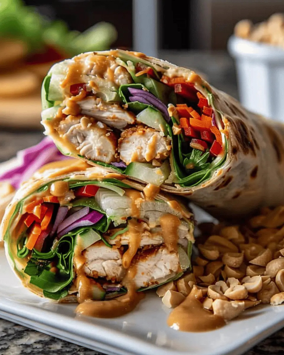 PrintThai Peanut Chicken Wraps: Easy, Flavor-Packed Delight at Home